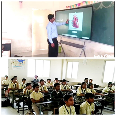 The digitally empowered smart classrooms that enables e-learning, is a unique feature of the school. The smart classrooms have ‘3D – Interactive Smart Board’ that makes teaching and learning process easy and interesting. The smart board technology creates an audio-visual environment that facilitates students to understand concepts quickly, easily and to retain its impact for a longer period. In addition, the smart boards are accompanied with huge library of 85,000+ 3D objects related to all subjects for all classes.